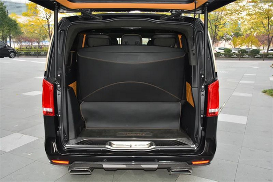 开启迈莎锐MV600誉金EASY—PACK电动尾门,一个纵深830mm的超大行李舱映入眼帘,可独立掀起的尾窗让存放行李变得更为轻松便利。三排座椅背后的MANSORY logo自带LED效果,夜幕降临之时如星光般熠熠生辉,后方来车都能看见这一抹亮色。