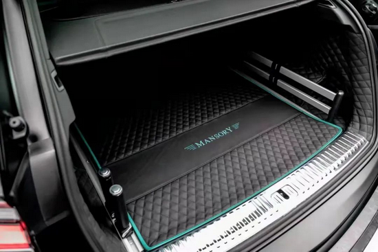 后备箱区域使用菱形纹真皮包覆,防尘防水更便于清洗,MANSORY迈莎锐用料之“重工”使人心悦诚服。