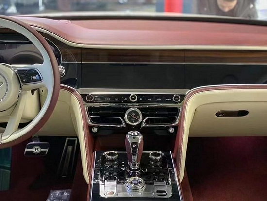 车厢内部,全新一代飞驰的车厢经过全新设计布局,将古典元素和现代元素完美地融合在一起,环抱式座舱给人豪华游艇的既视感。车厢内最大的亮点无疑是宾利家族最新的“三面翻转中控面板”,搭配12.3英寸全液晶仪表盘和“牛眼式”空调出风口以及丰富的菱形图案装饰,使得车厢同时兼具豪华感、科技感和古典味道。