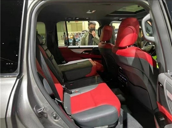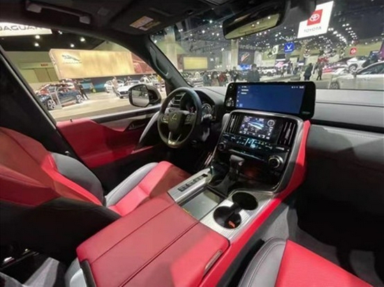 雷克萨斯LX600中控台整体依旧采用Tazuna Concept(缰绳)设计概念,绝大部分的功能都被集成在了中控台顶端的12.3英寸悬浮式中控屏内,支持语音控制、Apple CarPlay/Android Auto手机互联、远程OTA、车载WiFi以及互联网浏览等功能。车辆启动按钮被设置在了中控屏一侧,并首次配备了指纹识别技术。