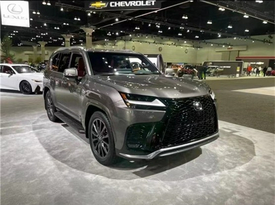 雷克萨斯LX (配置|询价)600新车整体变得更加宽厚,前脸尺寸巨大的纺锥形格栅尤其具有辨识度,外凸的银色横向格栅让前脸的视觉效果更加饱满,也成为了整个车头的视觉中心。