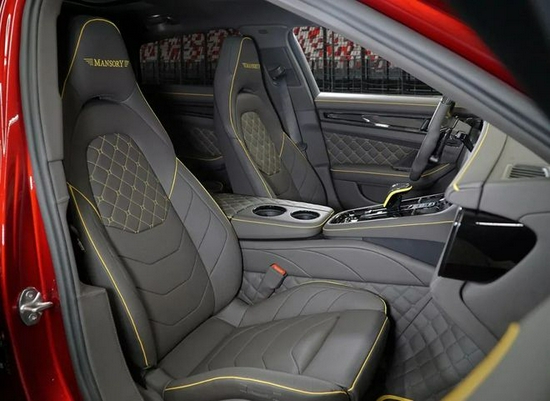 Panamera内饰部分自然也是经过了MANSORY的精雕细琢:Mastrotto菱形真皮、Alcantara麂皮绒、琳琅满目的碳纤维饰件在此交相辉映,共同缔造出一个热血魂动的赛车级内舱空间。