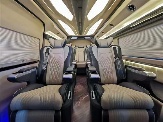 海狮保持了丰田一贯实用性的设计,全车采用了四张触控屏控制的航空座椅,座椅构造更符合人体曲线,令旅途行车倍感舒适,后排还有电动沙发座椅。海狮改装商务车不仅提供给我们舒适的乘车环境,车内还配置了高端音响设备,为我们在旅行中提供了优质音乐和旋律的需要,再加上车内增加了隔音设备,对回声的处理,丰田海狮改装商务车,更是为我们提供了最舒适的环境,宽敞的空间优雅的内饰,动听的音乐,这一切都是丰田海狮改装商务车的独特之处。