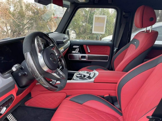 奔驰G63的内饰更能体现出奢华感和科技感,这部车这方面的设计基本上同级别很难找到竞争对手了。三幅式的方向盘,质感绝佳,专属的液晶仪表怕与中控屏同样采用了贯穿式的结构,再配上极具设计感的圆形的空调出风口,银色拉丝的镶嵌,瞬间营造出了一种与科技齐的氛围!
