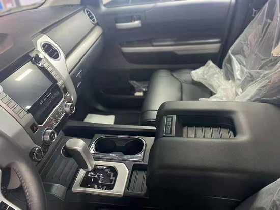 最热销的皮卡车20款丰田坦途TRD版皮卡内饰较为简洁大方,在色彩设计上基调较深,处处彰显的科技感和运动感还是暴露了这款车的特点。车间内的储物能力也十分强大,对于这种加版皮卡来说储物空间吝啬说不过去了,如果细数的话,车内光水杯架就有不下与10个。分别在前排扶手箱处、后排扶手处以及车内门板等各处一应俱全。