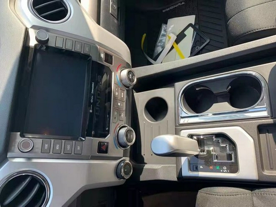 内饰上,2021款坦途TRD 越野版与此前亮相的Tacoma TRD 越野版保持风格上的一致。脚垫、头枕和控制台扶手以及旋钮上都点缀有“TRD”logo。依旧是宽大的中控台搭配各种大尺寸按键、旋钮的组合,配色方面采用深灰色与浅灰色搭配为主,可以很清楚的发现驾驶员一侧的色调以浅色调为主,作为一款皮卡,坦途内饰的用料和做工明显有过于“豪放”之嫌,中控台大面积的硬塑料材质说明它还是一款实用性至上的车型。