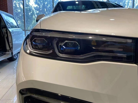 2021款宝马X7 (配置|询价)外观方面,新车极大限度的还原了概念车的设计,双肾式前格栅尺寸相比宝马现有所有车型都要更加巨大,中央的连接处也更显紧密。同时,新车两侧细长的大灯组内部采用了激光式大灯,以及比例更加扁平的家族式LED日行灯。2021款新车巨大的双肾格栅带有主动式进气格栅,可以缩短发动机的暖机时间与降低风阻,尽可能提升效率。而两侧大灯组尺寸与样式也非常帅气,标配LED光源可选装激光大灯,据悉最远照射距离可达600米,整体来看科技感与时尚感都非常出色,比起奔驰GLS (配置|询价)更符合时下主流。