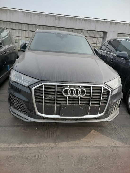 21款奥迪Q7 (配置|询价)外观方面,实拍全新奥迪Q7车型采用了金属质感极强的灰色车漆,运动感十足,进气中网采用六边形设计,并进行了黑色处理,视觉效果更加出色,全新造型的LED大灯赋予了整个车头的科技感,点亮之后非常漂亮。