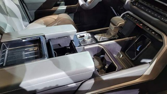 2022款丰田坦途内饰科技感提升明显,其高科技驾驶舱采用了更高质量的材料和改进的设计。入门版中控屏的尺寸为 8.0 英寸(老款为 7.0 英寸),但高配车型采用的是一个14.0 英寸触摸屏。更重要的是,它最终放弃了丰田糟糕的信息娱乐软件,转而采用更加直观和反应灵敏的新技术套件。标配Apple CarPlay 和 Android Auto,并且将集成Amazon Music 和 Apple Podcasts 等增强功能。新车还配备了全新四幅多功能方向盘,前方仪表面板是4.1英寸多信息显示器(低配)或 12.3 英寸数字仪表盘(高配)。