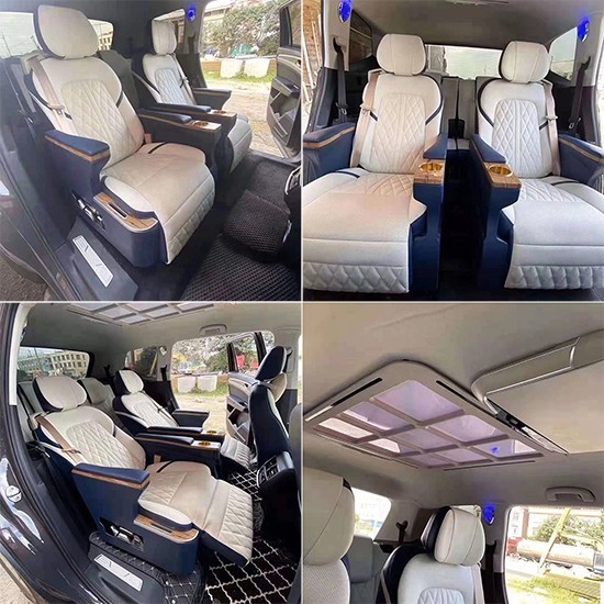 本公司专业改装以及专门为SUV车型系列研发多款专用配件,航空座椅以及内饰吧台、隔断、扶手箱等均有专用款式,不会去拿通用座椅版型去给客户改造出来。