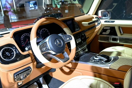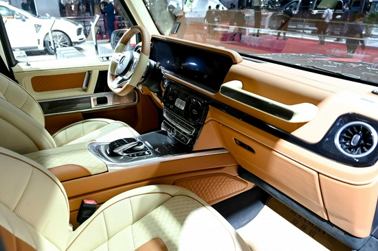 除了外观,迈莎锐G63 和G63 P720赛车级的内饰也令人眼前一亮:座椅、方向盘、扶手等部位皆采用Mastrotto小牛皮打造;无毒、无味、无害的意大利Alcantara环保麂皮绒包覆中控面板、地毯、内壁、车顶、后备箱等区域;随处可见的碳纤维饰件让内舱显得尊奢典雅,个性鲜明。其中迈莎锐G63 P720采用了“2+2”四座格局,较迈莎锐G63拥有更为宽敞豁达的中后排空间,乘坐起来更加舒适惬意。