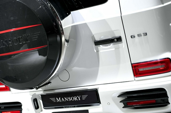 不论是迈莎锐G63 还是G63 P720,外观皆沿袭了G-Class (配置|询价)永恒经典的四方盒子造型。其中象牙白漆底的迈莎锐G63,车身大面积覆盖由MANSORY自家热压工艺打造而成的黑线碳纤维空气动力学组件,让全车显现出动感立体,层次分明的视觉效果。