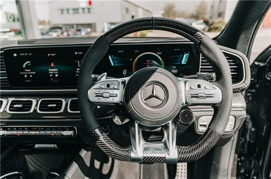 21款奔驰GLS63内饰设计非常豪华,AMG家族专属的镀铬金属方向盘质感不俗,双联屏的设计凸显了科技感,下部的四孔式出风口代表了GLS旗舰的地位,大量的真皮和碳纤维进行装饰,营造出浓郁的运动科技感。