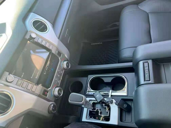 2021款全新丰田坦途TRD版皮卡中控区被银灰色的面板划分为驾驶区与乘坐区,在宽大的车身内排挡杆更为接驾驶员更便于操作,丰田坦途内饰简洁大方依旧突出了实用特点。