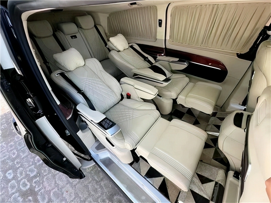 驰V260L商务车是根据国内客户的使用需求,进行了全方位的改装升级并支持个性化定制,是真正为中国高端消费者度身打造的百万级高端商务车。满足家庭出游或者商务接待等,奔驰V250L都将提供极致的驾乘表现,同时,将一如既往的在国内高端商务车行业内领航。座椅排布方式为2+2+3的设计,第二排采用多功能航空首长席,自带通风、加热、按摩、记忆的功能,控制的按键就在座椅一旁,非常顺手。