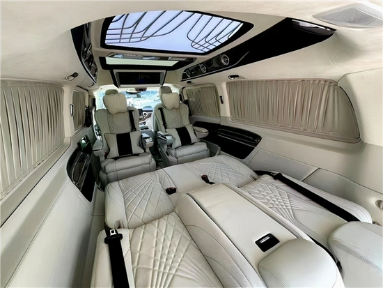 奔驰V260L改装商务7座车驾驶舱,沿袭自奔驰S级 (配置|询价)奢华中控设计,想必格外撩拨驾驶者跃动追逐的心。奔驰V260L臻藏版多功能方向盘支持前后及高低角度调节,更集成了多项实用性功能操控,便捷随心。奔驰V260L臻藏版配合全新奔驰V级 (配置|询价)装载的代表国际顶尖水准的柏林之声音响系统,为车内营造有如身临其境一般的环绕立体声,给驾乘者带来更高音质的听觉体验。
