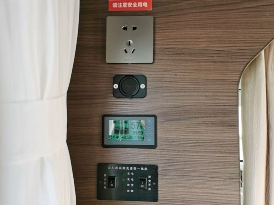 电路方面,选用集成配电面板,配备国电赛思3000W充电逆变一体机、防水等级IP67级的820AH磷酸铁锂电池、如果新能源500W单晶硅太阳能硬板等。