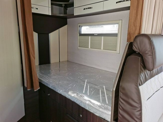尾部是一张纵置双人床,精致的细节设计渗透到了每一个角落。布艺床垫柔软舒适,在旅行途中也要舒舒服服地睡好觉!