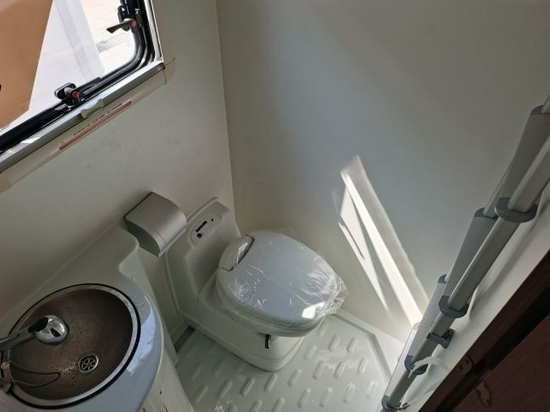卫生间内配置也很齐全,顶置的双向换气扇、 一体式抽拉淋浴水龙头、毛巾杆、浴室镜、手纸盒、卫浴帘、不锈钢面盆+水龙头、房车专用抽拉式马桶。另外整车的水路系统配有 257L净水箱/70L灰水箱、智能水泵、车外加水口。