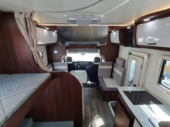 这款房车车身尺寸为:5995*2530*3115,最大总质量为4490kg,轴距3300mm,满足平时蓝牌C本的驾驶需求。前盘式制动操控性更强,流线型的大额头减低了风噪风阻,行车更安心。