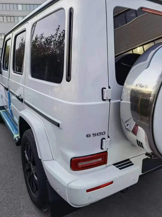 奔驰G500外观方面采用新的运动套件,前保险杠造型有所调整,格栅面积更大。大灯方面依然是远光一体的氙气大灯。新款G500的后备厢门依然是侧开式设计,把备胎挂在尾门上,野味十足。新车后侧窗和后车窗的采用深色隔热私密玻璃,私密性更强。