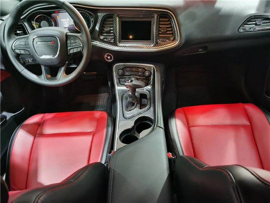 车辆内饰:道奇挑战者3.6 SXT版运动化的氛围,包括平底式方向盘、运动座椅、仿碳纤维内饰部件及铝合金装饰面板,内嵌式的圆形前大灯看上去异常凶悍,将美式肌肉车的豪迈风格展露无遗。内饰设计不言而喻,整体氛围相当运动化,复古的方向盘,8.4寸彩色液晶屏,如果再加上真皮座椅,奢华运动,说他是顶级赛车一点都不为过。仪表盘也是凶猛,指示表外的红色光圈,像极了发疯的野猫。后排空间并没有想象中那样局促
