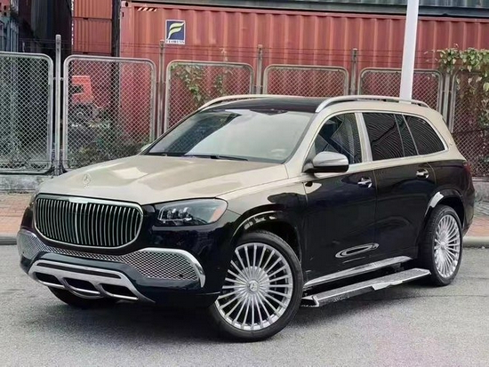21款奔驰迈巴赫GLS (配置|询价)600车身侧面,新车采用双色车漆喷涂,配备22英寸多幅熏黑轮毂,D柱之上镶嵌迈巴赫专属LOGO, 同时车窗周边的镀铬装饰也凸显了尊贵的身份,整体的车身设计简洁而干练。