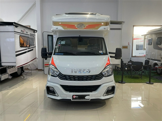 从外观来看,金冠房车的造型称得上是高颜值的车辆。采用的是依维柯欧胜 (配置|询价)双发电机底盘,8AT自动挡+3.0T柴油发动机。符合国6排放的标准。整车尺寸:长5980 宽2500 高3180,属于一台6坐6卧的车型。