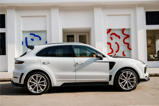 真正经得起推敲的品牌,必定不会拘泥于循规蹈矩。作为闪耀日内瓦车展的“流量巨星”,MANSORY并未针对这款细花白卡宴延续往日另类夸张的“魔改”风,而是在保留原厂雅尊气质的前提下,通过增加一个碳纤维宽体包围件来提升整体观感。此外,诸如:发动机盖带进气口、前唇、前/后保险杠、侧裙、扰流、后视镜罩、尾翼、后置扩散器等多个部位也都一一采用“轻胜铝、坚比钢、抗拉伸、耐高温”的黑线锻造碳纤维打磨而成的全套车身空气动力学组件做了全方位包覆升级。