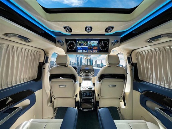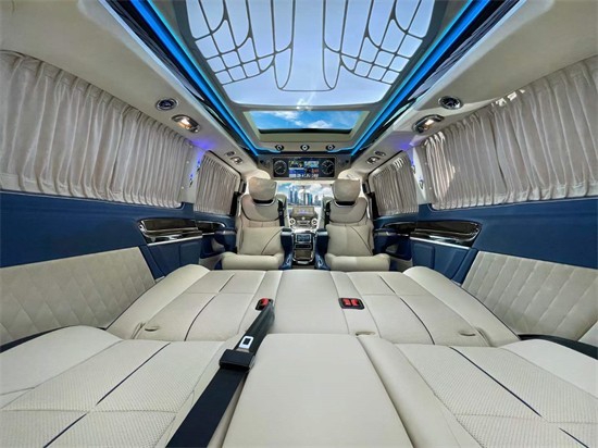 室内装饰方面,新款威霆改装商用车,选择皮革,复合海绵座垫,超细纤维皮革,高密度碳纤材料以及其他装饰材料来升级驾驶舱。在威霆的乘客舱皮革覆盖了汽车的墙壁,超细纤维皮革+麂皮屋顶,高光镜面亚克力迈巴赫地板和多功能皮革座椅。从视觉到触觉,整个乘车环境和体验都非常舒适和精致。