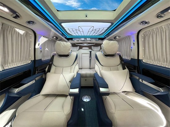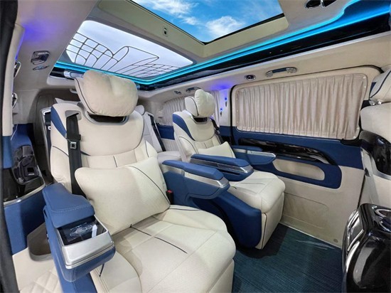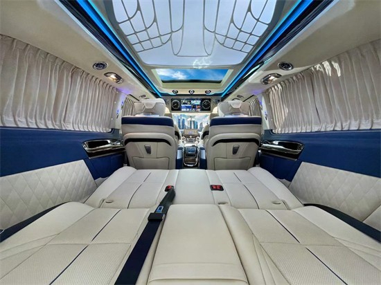 奔驰威霆后排乘坐舱配有折叠小桌板,让办公随心所欲。改装后威霆第二排的两个独立航空高级座椅,依照人体工程学设计,座椅加热、通风、气动按摩等功能以及腿拖,通过座椅扶手触控即可进行控制调节。保证乘坐者极致舒适体验,全方位疏解旅途劳顿。同时还具备180°旋转座椅向后方便与后排乘员互动交流,、乘坐感受十分温馨。
