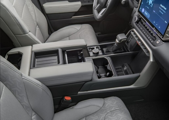 以往丰田皮卡车系列内饰设计确实没什么看点,就像丰田普拉多 (配置|询价)一样,主要以实用为主。但是现在时代变了,年轻消费群体越来越追求科技配置,丰田设计师团队也不得不做出一些改变,这次全新丰田坦途皮卡车内饰科技氛围已经相当强烈了,不仅有全液晶仪表盘加持,而且提供了超大面积悬浮导航屏幕,视觉效果甚至能够媲美特斯拉,TRD高性能版本更是提供了丰富的内饰装饰,比如红色真皮面料座椅,搭配有专属刺绣装饰。