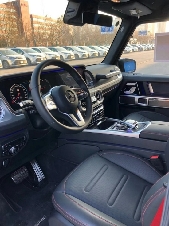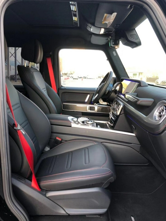 奔驰G350d 柴油 黑/黑 现车 配置:AMG运动包(20轮)、独家内饰包、电动天窗、宽屏显示器仪表盘、座椅通风按摩、多光束大灯、氛围灯、红色安全带、座椅红色缝线,方向盘加热,碳纤维内饰,鹿皮顶,隐私玻璃,不绣钢外观包