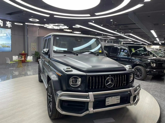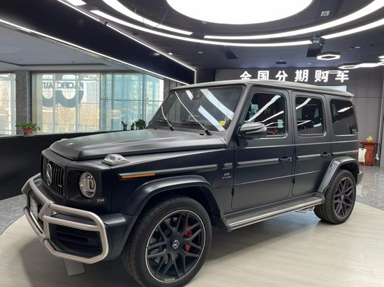 奔驰G63磨砂黑极富运动又独特的外观造型设计,经过重新打造的前进气格栅与两侧圆形几何大灯相交呼应,进气格栅的多幅式镀铬采用了镂空设计,保险杠也经过了重新演绎,几何大灯内部还增添了时下流行的LED日间行车灯设计,看起来更具时尚灵动感,使整个前脸的轮廓更为鲜亮抢眼。