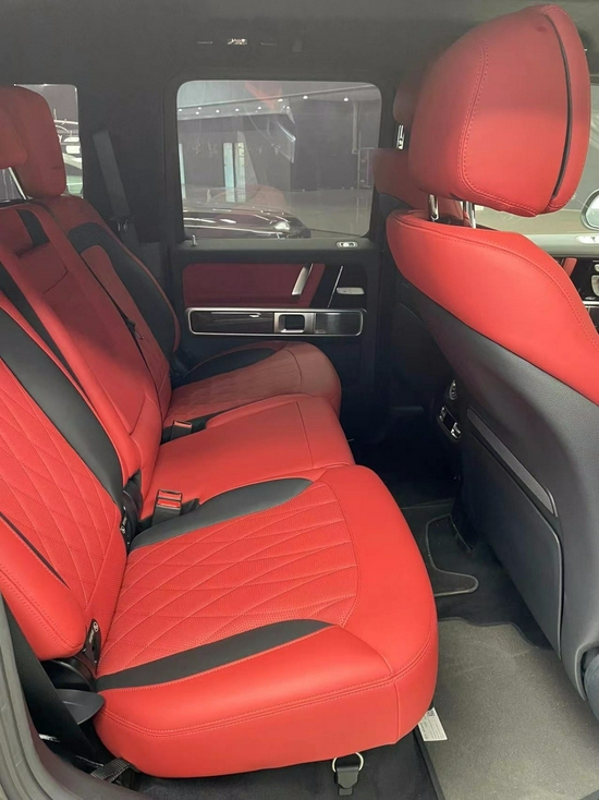 奔驰G63磨砂黑后排的腿部空间,相比之前车型得到了非常明显的提升。另外前后座椅的触感与舒适性以及后排座椅的倾斜程度均进行了升级,在配上标配的64色氛围灯,让这辆全新G63可以在长途旅行中提供更为舒适惬意的环境。