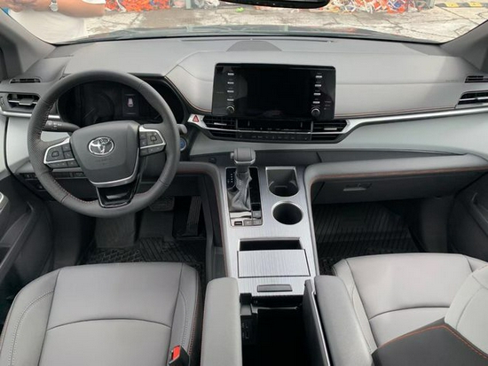 全新塞纳在内饰部分的变化非常之大,一改现款车型中庸的设计,整个中控台都是偏向驾驶员一侧的设计,并且上中下区域划分明显,精致感十足。配置方面,全新Sienna提供12扬声器、在线导航,苹果Carplay、Android Auto、抬头显示、全景影像以及丰田最新的主被动安全系统。