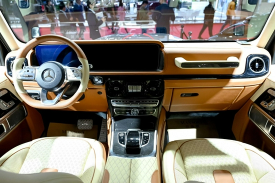 除了外观,迈莎锐G63 和G63 P720赛车级的内饰也令人眼前一亮:座椅、方向盘、扶手等部位皆采用Mastrotto小牛皮打造;无毒、无味、无害的意大利Alcantara环保麂皮绒包覆中控面板、地毯、内壁、车顶、后备箱等区域;随处可见的碳纤维饰件让内舱显得尊奢典雅,个性鲜明。其中迈莎锐G63 P720采用了“2+2”四座格局,较迈莎锐G63拥有更为宽敞豁达的中后排空间,乘坐起来更加舒适惬意。