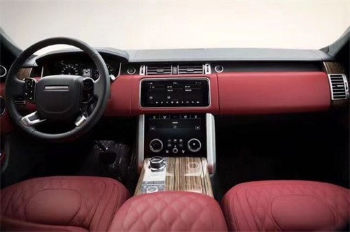 这台路虎皇家一号采用当下顶级奢华的双色车身,熏黑的LED大灯,机盖上的路虎字母无时不在的彰显着身份 ,这台前脸是标志性的揽胜 (配置|询价)的设计,仔细看你会发现端倪,22寸的锻造轮毂,一只就要几万,2000mm的车身高度,比普通揽胜高出131mm