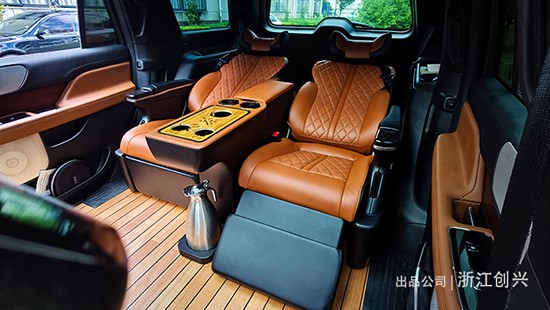 升级后座椅特意做的比原车更软了,座垫采用的是带记忆功能的海绵,而靠背用的海绵是最软的海绵做成的,座椅带电动腿托功能,另外可以前后移动,靠背可以调节。