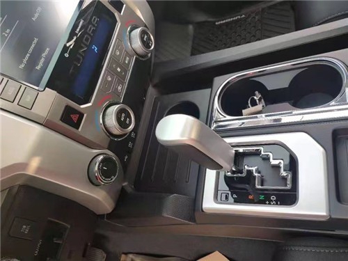 20款丰田坦途SR5TRD的内饰设计风格感觉比较熟悉,依旧是宽大的中控台搭配各种大尺寸按键、旋钮的组合,配色方面采用深灰色与浅灰色搭配为主,可以很清楚的发现驾驶员一侧的色调以浅色调为主,作为一款皮卡,坦途内饰的用料和做工明显有过于“豪放”之嫌,中控台大面积的硬塑料材质说明它还是一款实用性至上的车型。