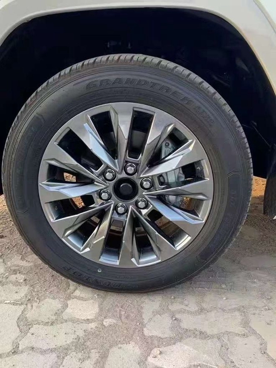 22款丰田酷路泽车身侧面的设计较为简洁流畅,配备大尺寸银色轮圈,车窗外缘配有镀铬饰条,整体依旧呈现了很强的气场。