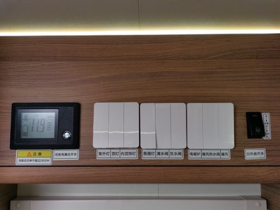3000W变器、400Ah免维护电池等,以及160L净水箱和45L灰水箱。后期支持选装,可以根据自己使用需求来定制。