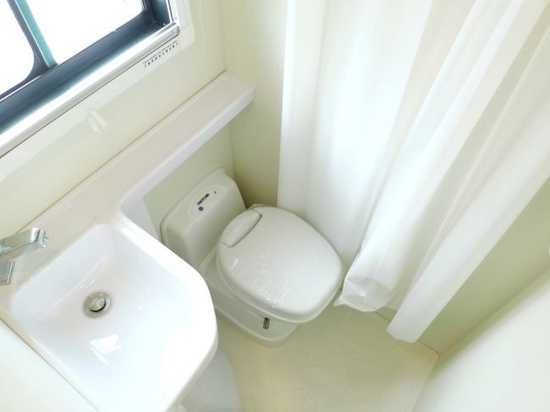 旁边的卫生间采用的独立一体式的,内部空间挺大,提供了包括马桶、洗手池、淋浴、换气扇在内的洗漱设施等,另外在卫生间内部还提供了一个扶手,便于老年人使用。