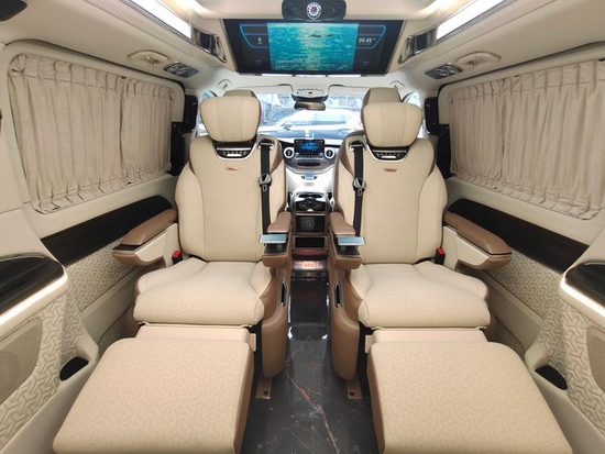 这台新款奔驰v260商务车除了基本的功能,出色的空间表现、灵活的座椅布局也让它与众不同,二排座椅可以在人不离开座椅的情况下就可以轻松往后旋转,随时打造一个移动的商务场所。