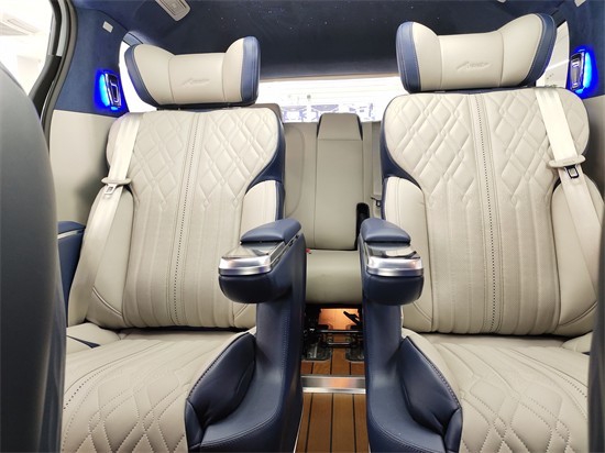 别克GL8在后排的设计上看到了改变。首先这款车加入了双零重力的航空座椅,并且可翻转的移动小桌板也进行了重新的调整,所以在豪华感的营造上就更加的直接了。此外,2022款别克GL8改装还加入了15.6英寸的wifi吸顶电视,再配合全车的高品质的音响系统,在娱乐性的营造上也更加直接!地板方面这款车配备高档柚木地板,再配合九宫格状的棚顶,是不是比埃尔法的造型更有豪华感!