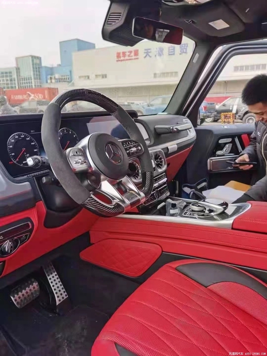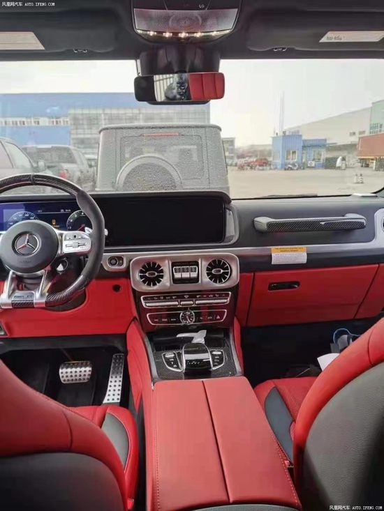 21款奔驰G (配置|询价)63内饰方面其实才全新一代G级最大的变化。新车换上了奔驰最新家族式的内饰设计,这无疑让G级拥有了旗舰机应有的豪华感,不过经典的副驾驶席扶手和三把锁的开关键依旧延续了经典设计,并设置在中控台最显眼的位置。其中双12.3英寸高清屏,虚拟仪表盘与中控液晶屏融为一体,视觉上形成一个宽屏驾驶舱,中部的涡扇式空调出风口也颇具设计感,还大量采用了皮革的包覆。