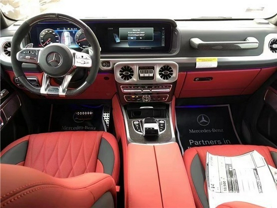 21款奔驰G63档次、质感和科技配置都明显提升全新奔驰G级 (配置|询价)的内饰相比老款有了明显的提升,采用了奔驰最新的双屏幕式设计,全液晶仪表盘和中控台屏幕都达到12.3英寸,同时内饰质感和工艺都有了很大的进步。中控涡扇式空调出风口也颇具设计感,无不彰显着车主的尊贵身份。