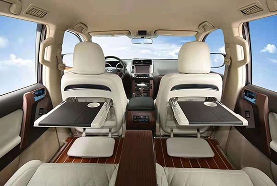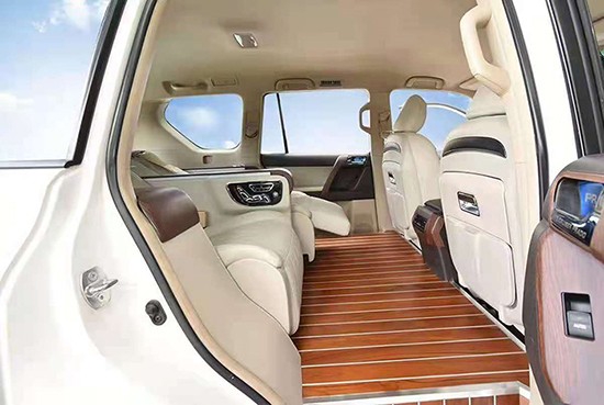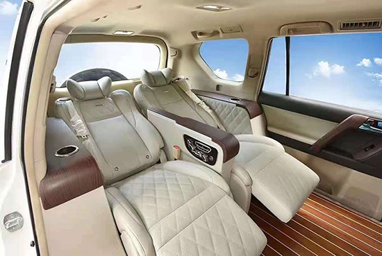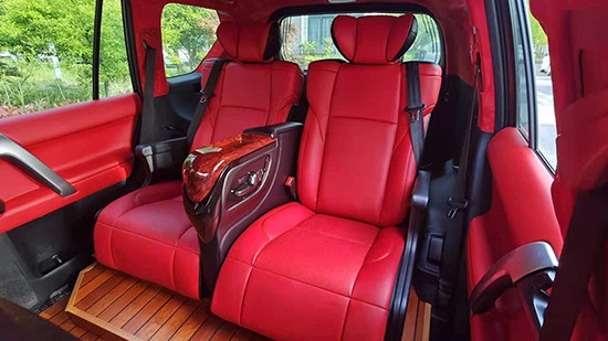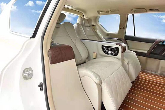 普拉多升级过后内饰瞬间达到百万豪车级别,从五座车变成四座车,原本的座椅变成两张气派的航空座椅、就像是大沙发一样,实际上这两张航空座椅是非常有日本车风格对吧,因为安装的这两张座椅正是丰田旗下MPV车型埃尔法 (配置|询价)汽车上的中排座椅,丰田埃尔法大家都知道是保姆车,其价格能值上百万除了外形让人无法拒绝的爱之外最大的亮点是中间的两张航空座椅,知道的都知道,埃尔法拥有汽车当中最舒适的汽车座椅,装上普拉多上体验感一样很好,可以用享受来形容。