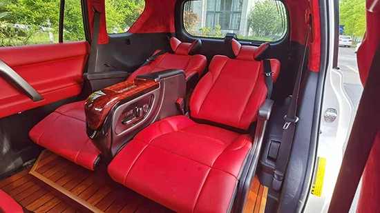 四座版的空间非常理想,腿部空间宽阔、可以在车上躺着睡觉也没有问题,主副驾做了有小桌板还铺上了柚木地板显出质感和档次,总体上简直就是一台日版迈巴赫。