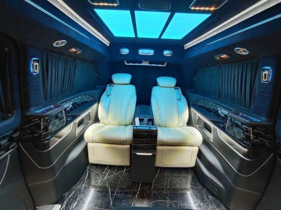 2021款奔驰V260L改装商务车、奔驰V260L尊贵加长版改装商务MPV隐藏六座加装高顶改装,整车长宽高5400*1928*2080。承袭梅赛德斯-奔驰家族设计语言,新V级造型大气简约而不失时尚,车内空间宽敞舒适,座椅布局灵动百变,电视下方的隐藏秘书座椅电动一键展开充分满足各类商务出行需要,堪称中国商界精英最好的投资选择,将助力其奋斗之旅“出众亦从容”。奔驰V260L改装隐藏六座全隔断商务车,后排座椅采用两个迈巴赫62S首长级座椅,带加热,按摩,通风,一键式电动调节记忆等功能。奔驰V260L改装高顶隔断商务车座椅符合人体工程学设计,同时带有电动椅背调节,电动头枕,电动前后调节,一键式伸缩腿托功能,带来头等舱级舒适体验,私家客厅级后舱体验。